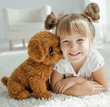 Kinderen stralen van vreugde wanneer Wuffy blaft, kwispelt of aan hun zijde kruipt, zodat ze de kans krijgen om te koesteren, te spelen en te fantaseren zonder scherm. Wuffy is een metgezel die momenten van puur geluk en blijvende herinneringen creëert.